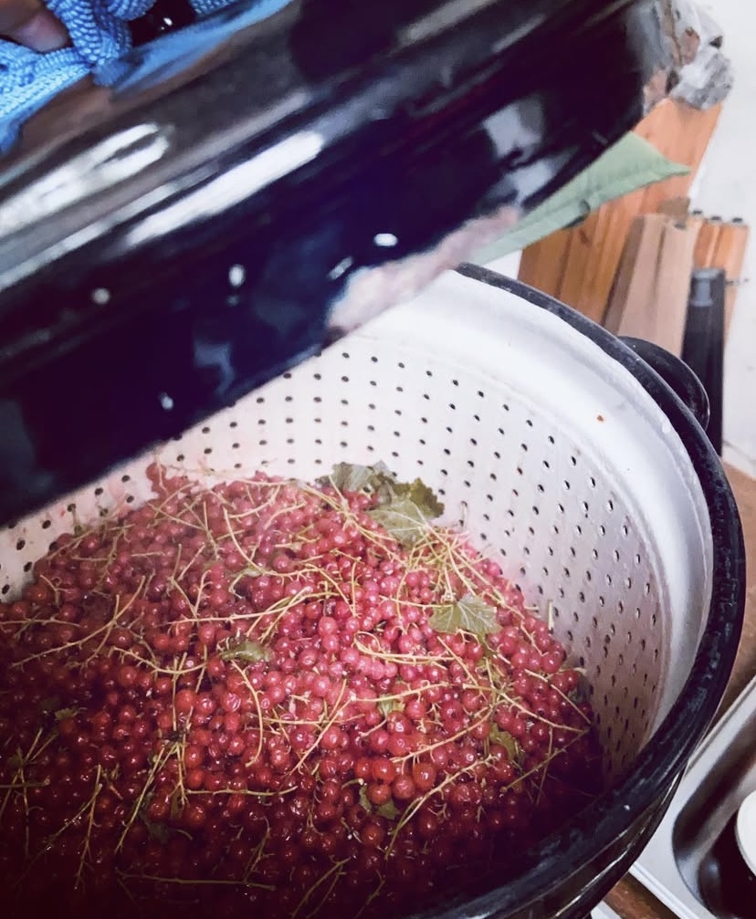 Heute durften bei unserer Nachbarin im Sauerlandgarten Johannisbeeren ernten. Was für ein Geschenk und was für eine Farbe.